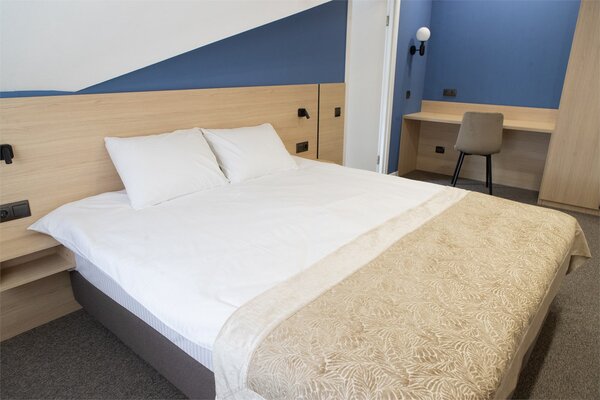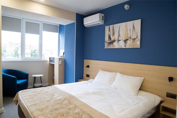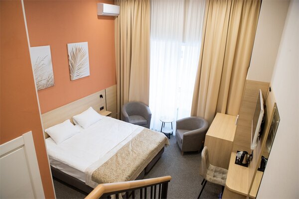 Каждый номер оснащен современной мебелью и техникой, включая кондиционер, телевизор, холодильник, чайник и сейф. Для вашего удобства предусмотрены уютные кровати, а также собственные ванные комнаты с феном и полным набором туалетно-гигиенических принадлежностей.
