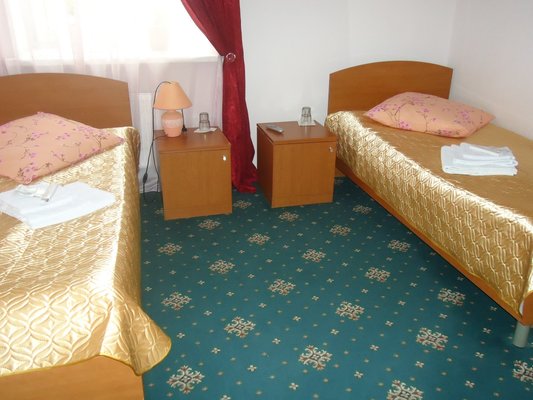 В распоряжении гостей — комфортабельные номера класса стандарт (одноместные и двухместные) с одним сан узлом на два номера, улучшенные номера и люкс со своими санузлами в номере. Номера расположены секциями, по 2 номера, что очень удобно при заселении.