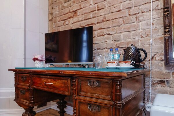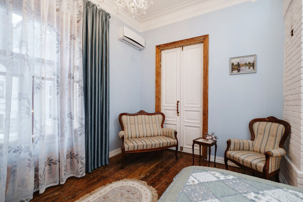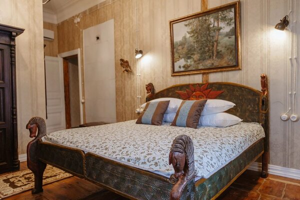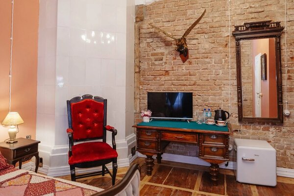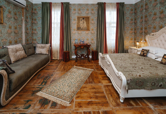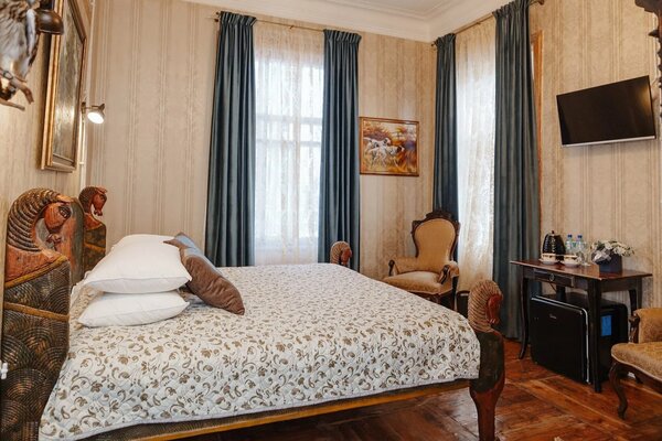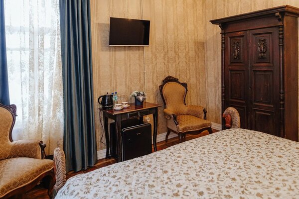 Гостям предлагаются роскошные номера, оформленные с использованием предметов искусства и антикварной мебели, создающие неповторимую атмосферу старины. При этом все номера оснащены современными удобствами, включая Wi-Fi и кондиционеры. В отеле работает ресторан, предлагающий изысканные блюда дореволюционной русской северной кухни, приготовленные по традиционным рецептам из свежих местных продуктов.
