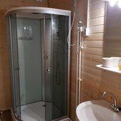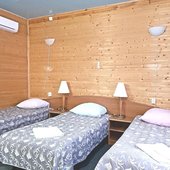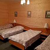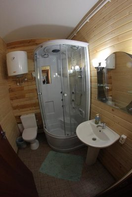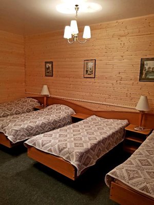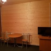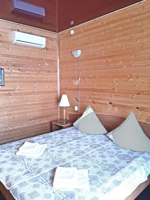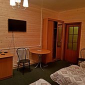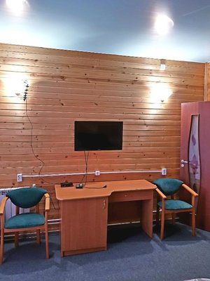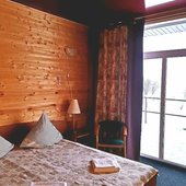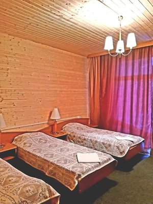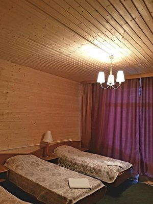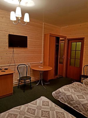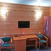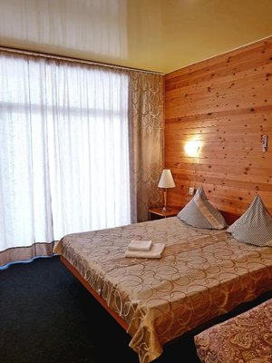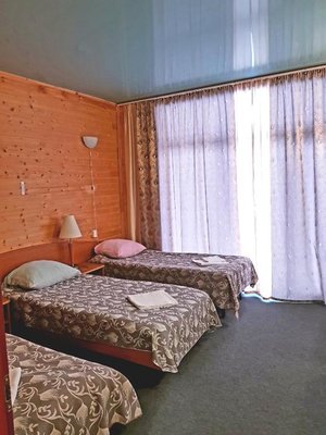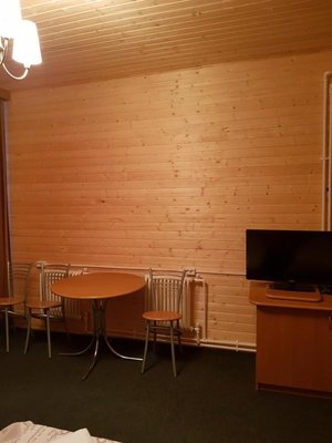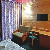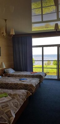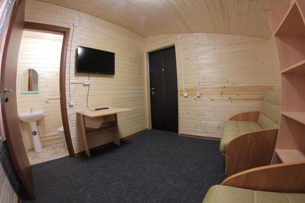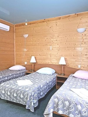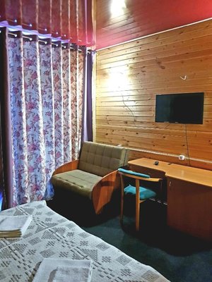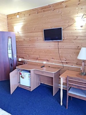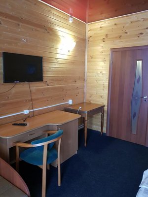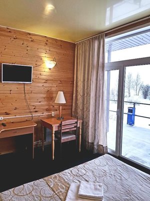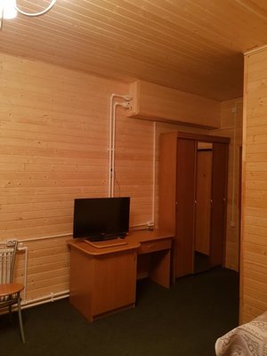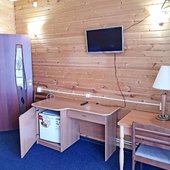 Гостиница представляет собой 2-этажноe деревянное здание. 11 номеров 1 категории. 10 номеров с видом на озеро. Первая береговая линия. У каждого номера отдельный вход, прихожая, санузел с душевой кабиной, горячая вода через накопительный водонагреватель, комната плошадью 20 кв. м. с холодильником, ТВ, интернетом. Кондиционер — во всех 11 номерах. У каждого номера есть выход на террасу.