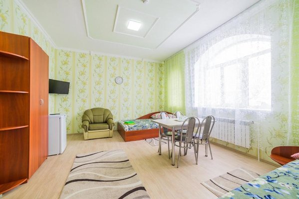 В каждом номере имеется ж.к. телевизор, холодильник,ванная комната (душевая, умывальник и туалет с современной сантехникой). Все номера оборудованы удобной функциональной мебелью, бесплатным Wi-fi. На территории отеля бесплатная стоянка для личного транспорта.