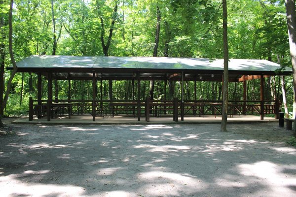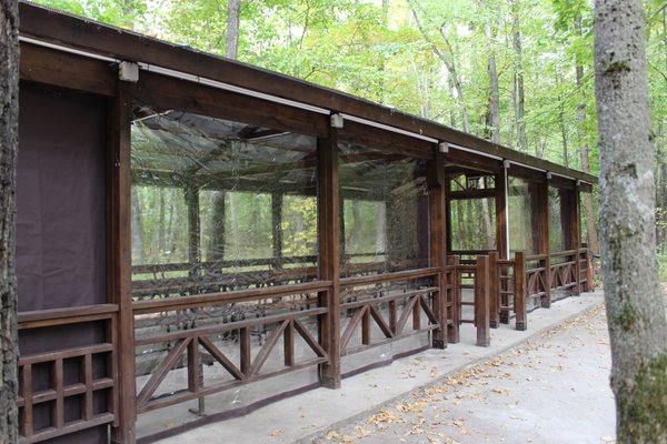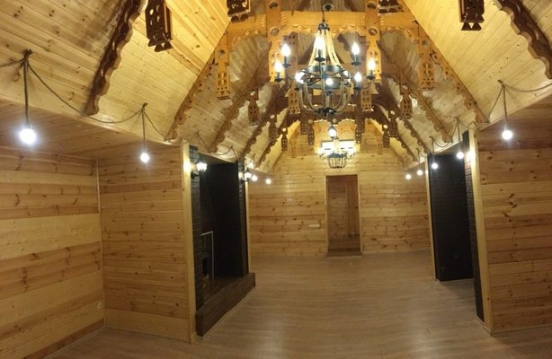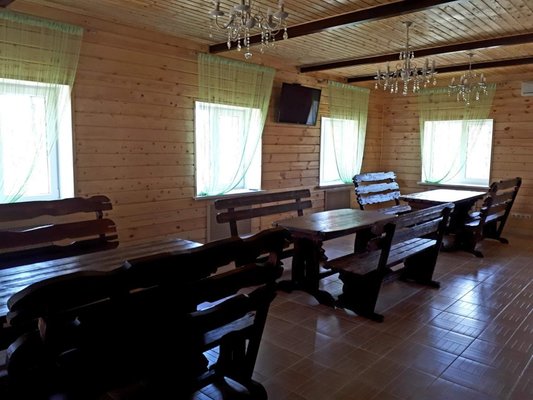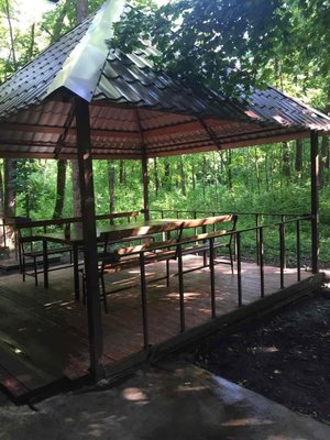 Большая беседка. Комфортное размещение: 50 человек. Место для танцев. Освещение, розетка, муз. центр, холодильник. Мягкие окна надежно защищают пространство от пыли, осадков, порывов ветра, ультрафиолета. Предоставление мангалов. К беседке прилагаются 2 полноценных раздельных туалета с умывальниками, а также две уличных раковины. Стоимость аренды с 10:00 до 22:00: будни (пн-чт) — 10000 ₽ (до 20 человек), праздничные и выходные дни (пт-вс) — 15000 ₽ (до 20 человек), свыше 20 человек — 100 ₽/человек.