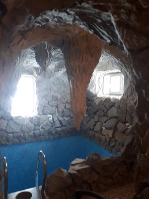Чтобы освежиться и приятно провести время, посетите удивительный бассейн с подсветкой, который выполнен в форме грота.