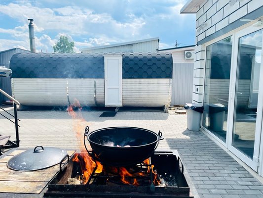 Вы сможете посетить настоящую русскую баню, отдохнуть и попить вкуснейший чай. Расположена в глубине территории, в уединённом месте рядом с чаном и беседкой.