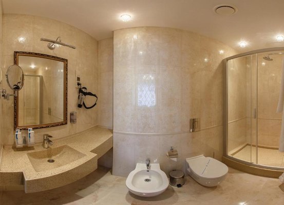 В числе удобств каждого из 75 просторных и уютных номеров — кондиционер, холодильник, сейф, телевизор с плоским экраном и каналами спутникового телевидения, рабочий стол. Ванная комната укомплектована феном, также гостям предоставляются халаты, тапочки и бесплатные туалетно-косметические принадлежности.