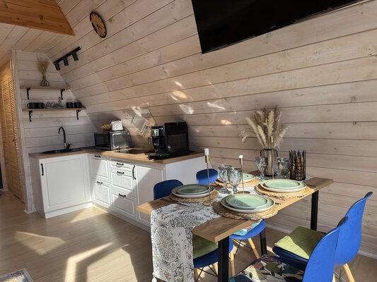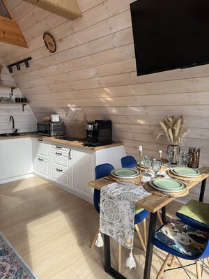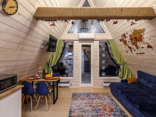 Каждый А-фрейм домик создан для вашего максимального комфорта и оборудован всем необходимым, чтобы вы чувствовали себя как дома. Для полного расслабления и приятного времяпровождения доступны: