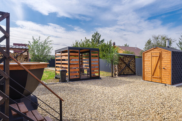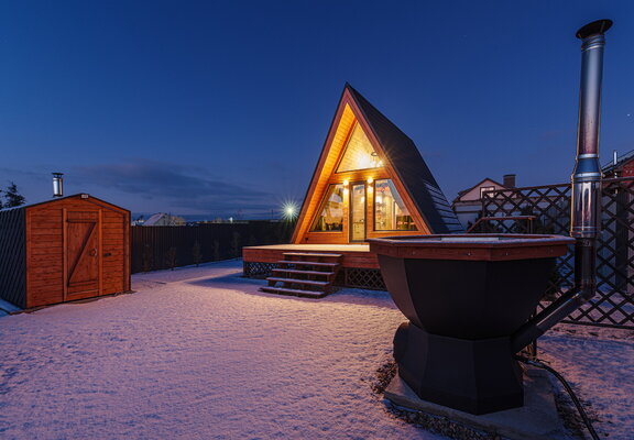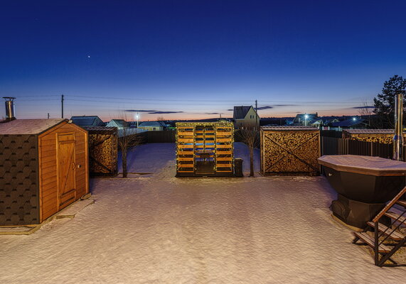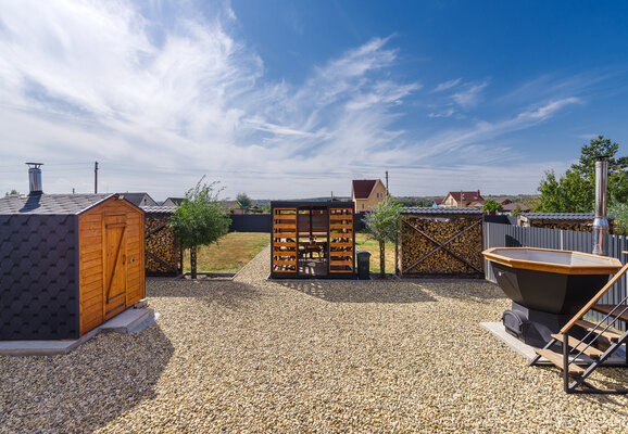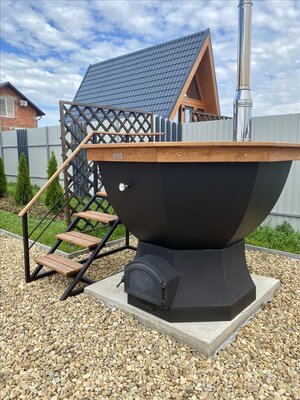 Сибирский банный чан у каждого домика. Вместимость: 4-5 человек.
