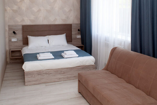 Каждый номер продуман до мелочей для вашего комфортного отдыха: вас ждут удобные кровати с ортопедическими матрасами, современные сплит-системы, плоские телевизоры, холодильники и вместительные шкафы для одежды. Индивидуальные ванные комнаты оснащены теплым полом, душем, туалетом, раковиной, феном, а также набором свежих полотенец и необходимых гигиенических принадлежностей.