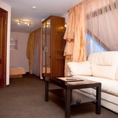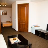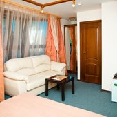 Номера оснащены телевизором, холодильником, кондиционером, сан. узлом с душевой кабиной с подачей холодной и горячей воды, бесплатным доступом Wi-Fi. На этаже представлены услуги общего пользования: Стиральная и сушильная машина, гладильная доска и утюг.