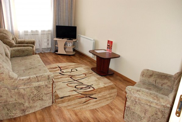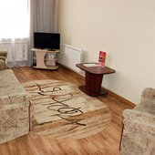В гостинице также функционирует просторная сауна, с банкетным залом и мини кухней, бильярдной комнатой, и многим другим.