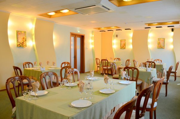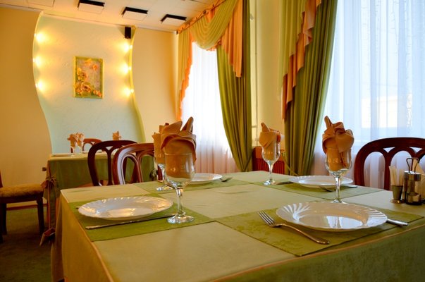 На территории отеля находится кафе, в котором предлагаются традиционные блюда европейской и русской кухни. Кроме того, блюда из меню будут доставлены в ваш номер по желанию.
