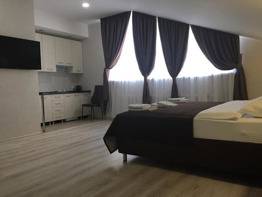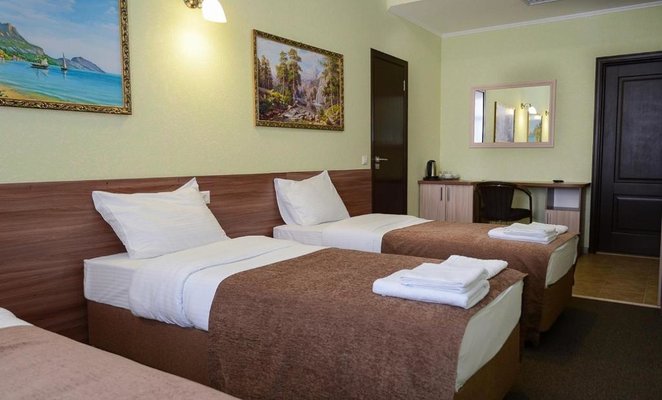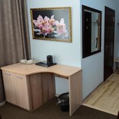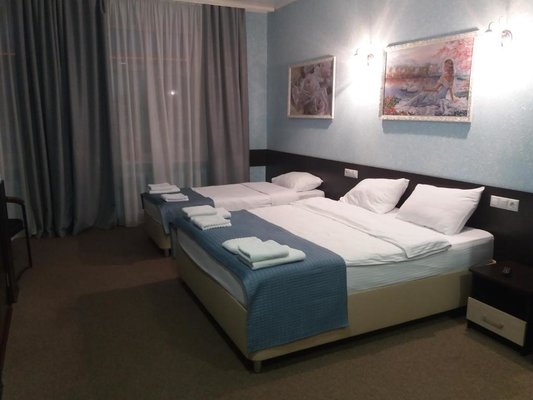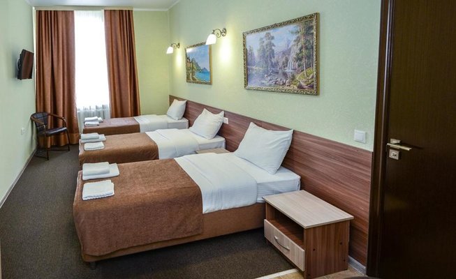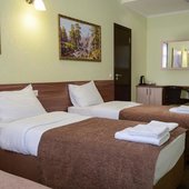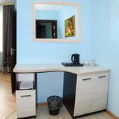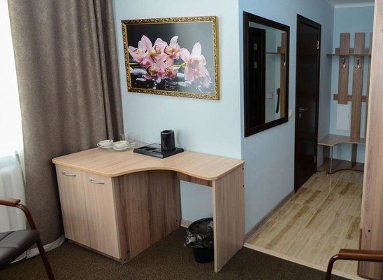 Каждый номер оснащен всем необходимым для комфортного проживания: цифровое ТВ, интернет, телефон, сейф, кондиционер, фен. Холодильник и чайник в номерах категории люкс, комфорт, полулюкс, номер для инвалидов.