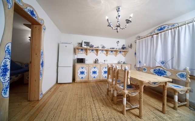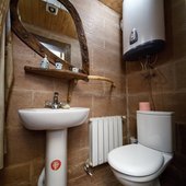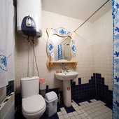 Туалет, душ, посуда, СВЧ — печь, камин, гриль-печь |