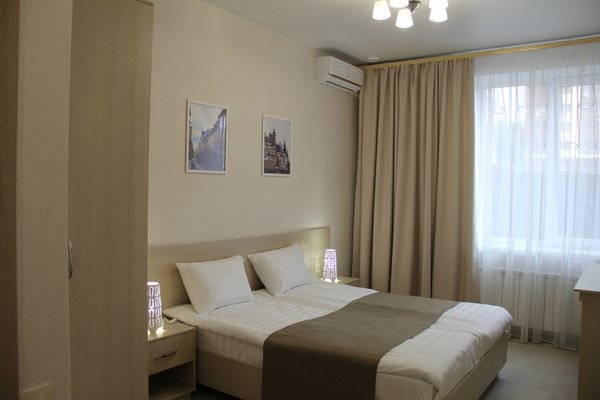 К услугам гостей 18 комфортабельных номеров, оснащенных по последним технологиям, а также широкий выбор дополнительных услуг: охраняемая парковка, конференц-зал, бесплатный доступ в Интернет (WI-FI).