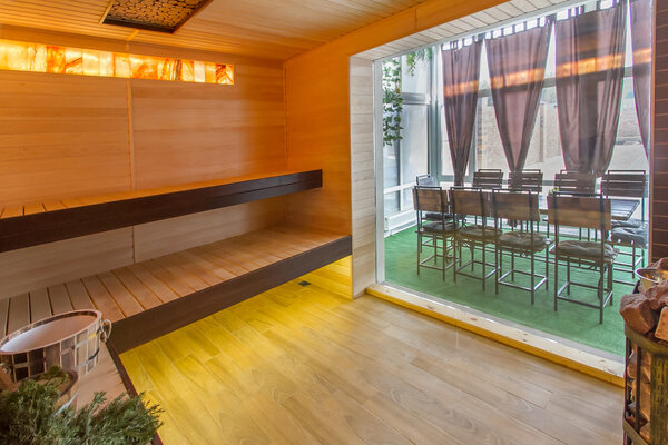 На территории комплекса имеются банкетный зал, зона для барбекю, а также услуга обслуживания номеров. Для отдыха и релаксации гостям предлагается подогреваемый сезонный открытый бассейн, банный чан, русская баня и спа-центр.