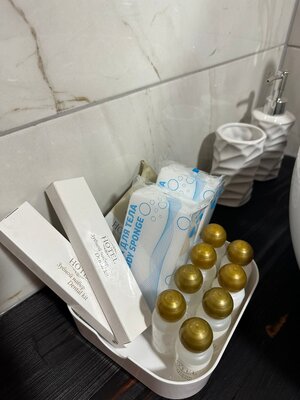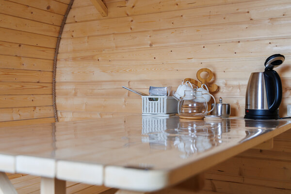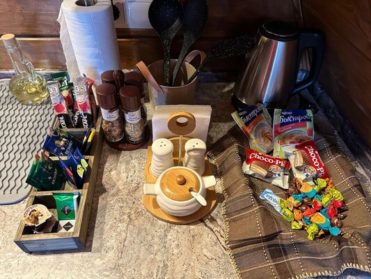 В бане свой санузел, душевая кабина, шампунь, гель для душа, мыло, а также имеются чайник, посуда для чая, масла, веники.