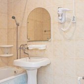 Вся инфраструктура санатория сосредоточена в одном корпусе: номерной фонд – 49 номеров, лечебно-диагностический центр, обеденный зал, банкетные залы, бар, финская сауна с бассейном, бильярд, настольный теннис, библиотека, пункт проката спортивного инвентаря, караоке-зал, банкомат, парикмахерская, маникюр/педикюр, Wi-fi.