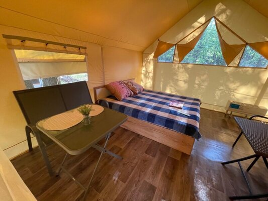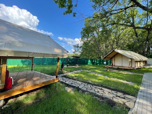 Солнечная поляна расположена на берегу реки Усманка, является идеальным местом для гостей, желающих провести роскошный семейный отдых среди захватывающего духа природного ландшафта.