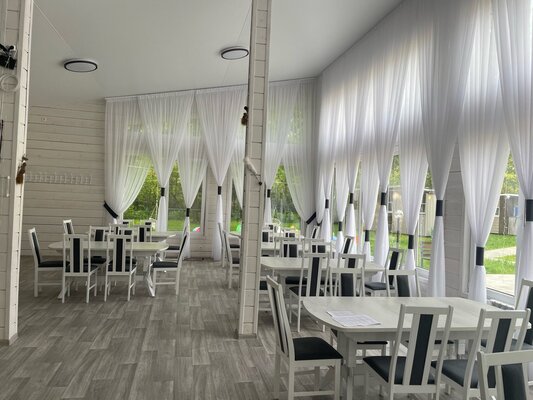 В банкетном зале базы отдыха вы сможете ощутить полноту жизни, приятно провести время, любуясь красотой природы за окном. Если вы хотите отдохнуть на свежем воздухе и скучаете по тихой прохладе дубового леса, то к вашим услугам уютные террасы, оборудованные всем необходимым для яркого и незабываемого отдыха.