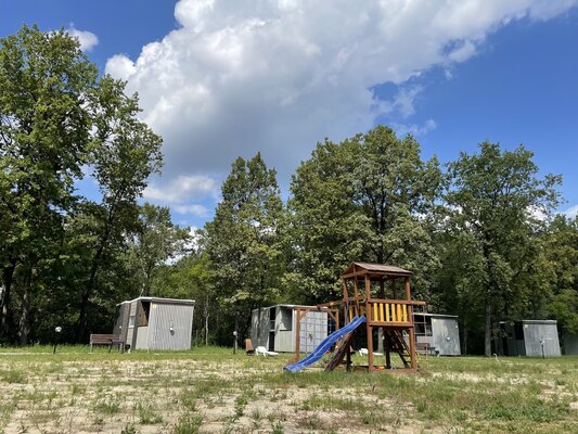 Для детей построена небольшая детская площадка, где малышам нравится кататься на качелях и горках, весело проводя время с друзьями.