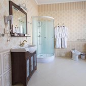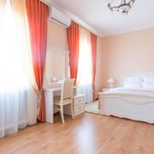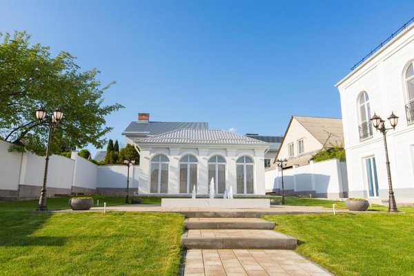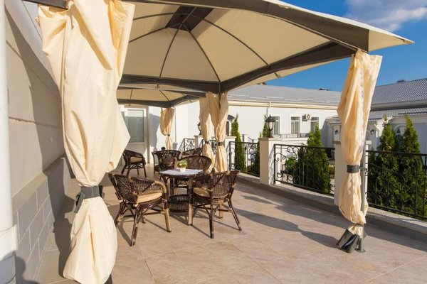 Вилла предстовляет собой три двухэтажных корпуса, расположенных по периметру территории. Вилла имеет собственную благоустроенную территорию, на которой распологается бесплатная авто стоянка, ресторан с летней верандой, парковая зона.