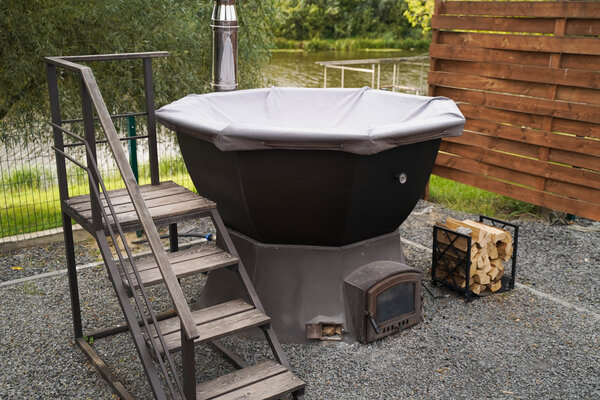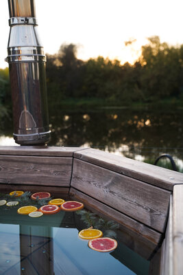 Парная двухъярусная с подсветкой, с ароматным панно из можжевельника, с термометром, с эфирными маслами, с деревянным банным тазиком и ковшом. Рядом с баней расположен Сибирский банный чан (оплачивается отдельно 5000 ₽) и мангал.