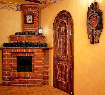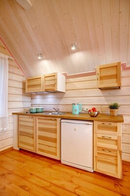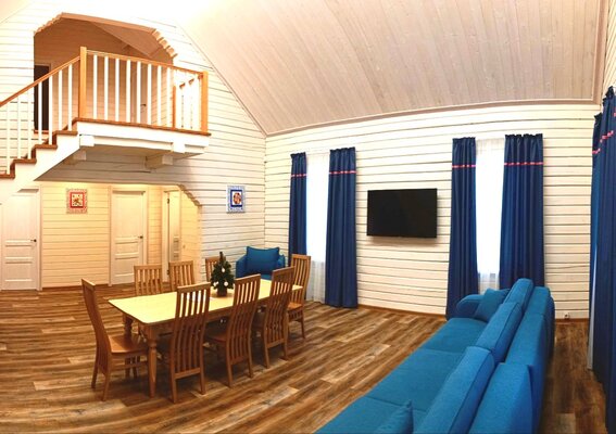 Парная на дровах, 2 купели с водой разной температуры и 1 купель с «молочной водой», просторная комната отдыха, камин, душевая, санузел, ТВ, фены, холодильник, мини-кухня (с набором посуды), принадлежности для ванной комнаты, обливное ведро с ледяной водой, шапочки, полотенца, простыни. Угощаем душистыми травяными чаями, с медом, сушками и вареньем из малины да клубники с наших полей.