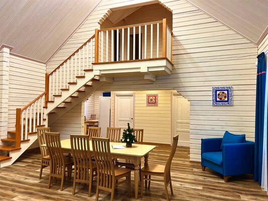 Баня — это ладное и добротное пространство, наполненное теплом, запахом свежего пара, луговых трав русских равнин, мёда и ягодного варенья. Её планировка, конструкция и внутреннее убранство создавались с учётом верности многовековым банным традициям, их стойкости и уникальности. Посетить баню с пользой для души или тела можно дружной компанией или семьей до 8 человек.