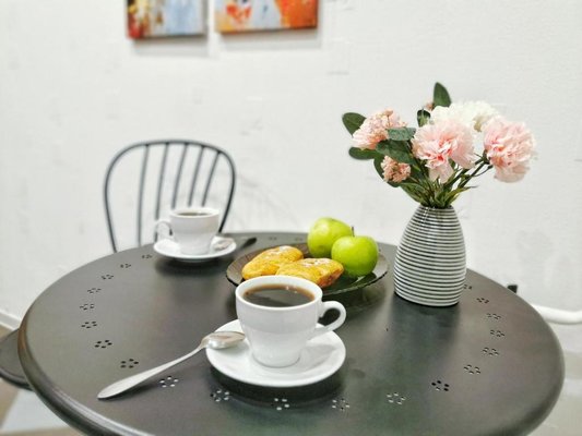 Готовить можно самостоятельно на собственной кухне. В шаговой доступности расположены продуктовые магазины и места общественного питания.