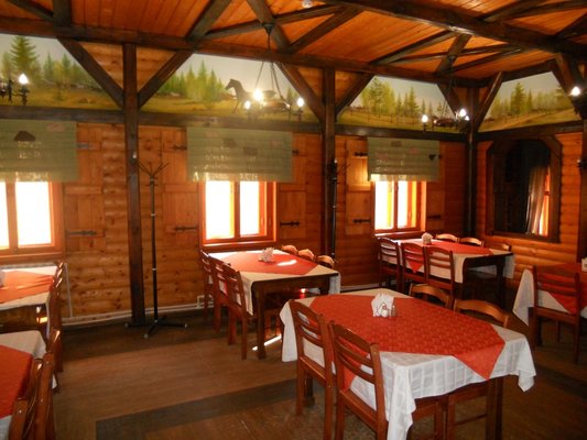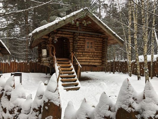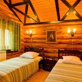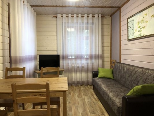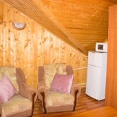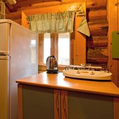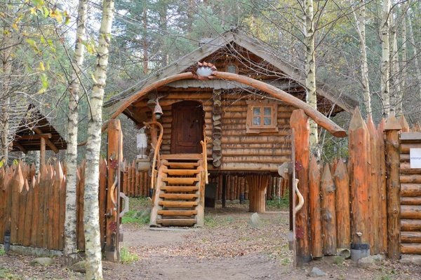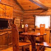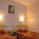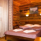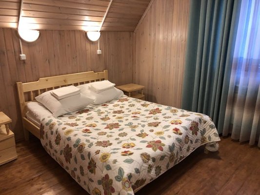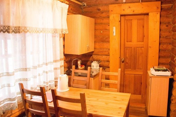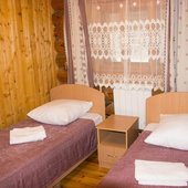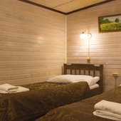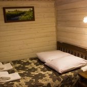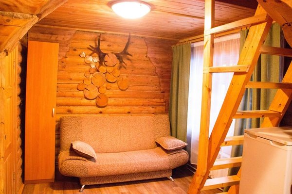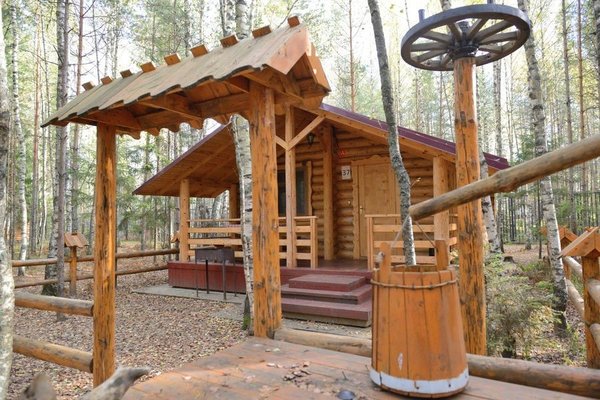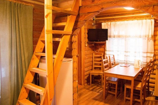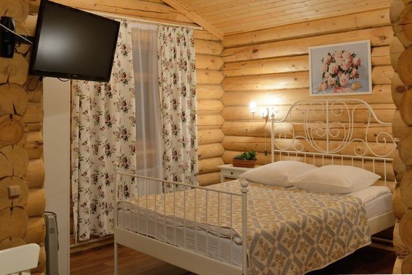 Для размещения гостям предлагаются номера в гостинице, деревянные коттеджи и дом-избушка, где есть все необходимые условия для проживания.