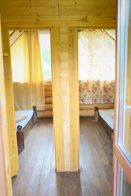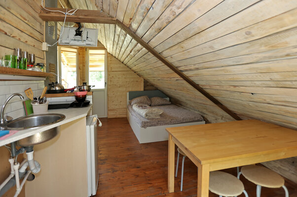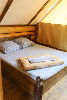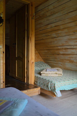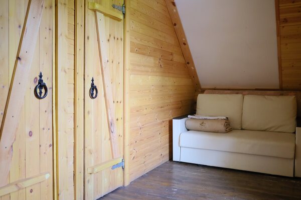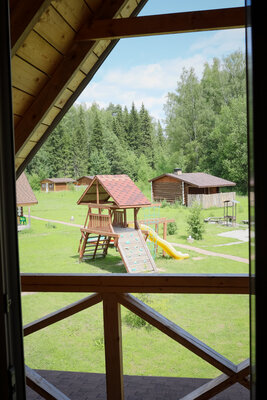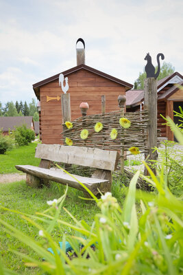 Территория комплекса продумана до мелочей для разнообразного досуга. Дети придут в восторг от просторной игровой площадки с качелями и песочницей. Для любителей активного отдыха — волейбольная площадка и поле для пляжного футбола. А завершить день, окунувшись в атмосферу полного релакса, поможет настоящая русская баня на дровах.