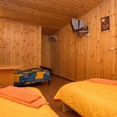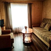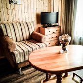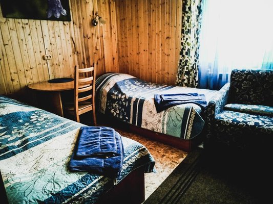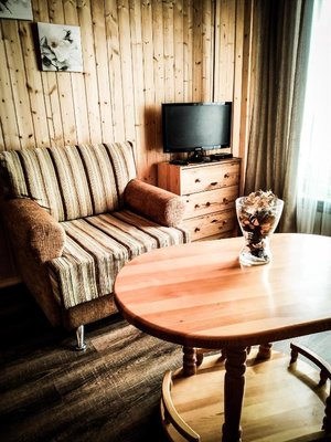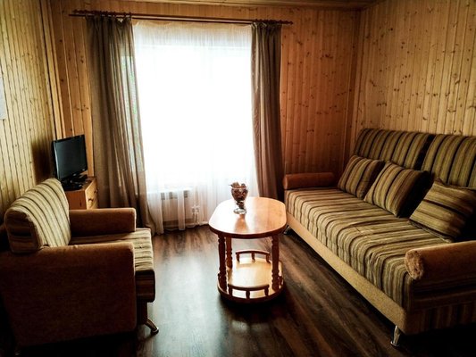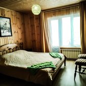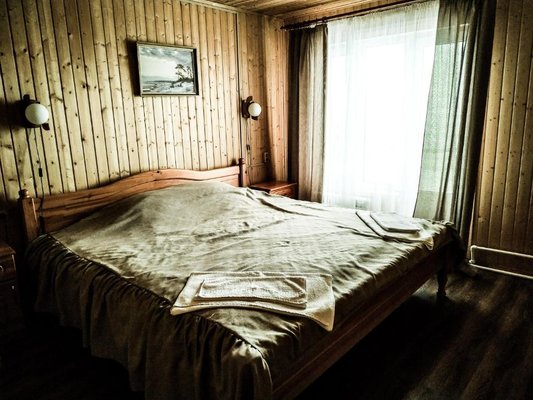 номер за 6000 рублей ( полу-люкс) не оснащен ни тв, ни холодильником. !!!!!!Это главный минус! Ну и вода из крана сама по себе очень пахнет именно озером