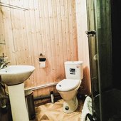 В номере вода не фильтруется, жёлтая и пахнет болотом. Во втором туалете не шла вода. Всё крючки и полочки плохо прикручены и ничего не повесишь. Нет детской площадки. В зоне барбекю не моют столы и скамейки. Плохой интернет