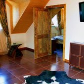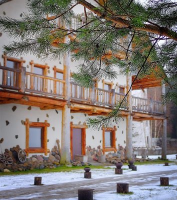 Едем по указателям и упираемся в большие деревянные ворота с ковкой.