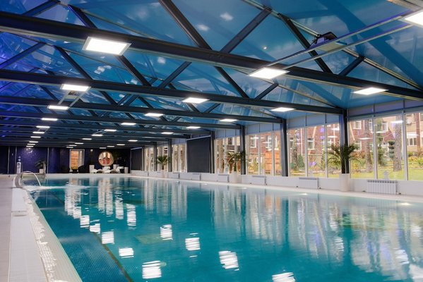 Вода в бассейне дезинфицируется особым способом, активного хлора в воде практически нет. Весь технологический цикл обеспечивается немецким оборудованием.