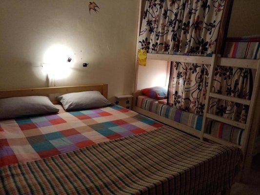 Спальное место на двухъярусной кровати в общем номере для мужчин и женщин
