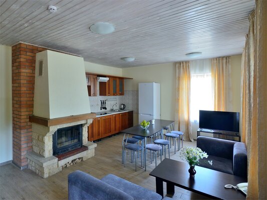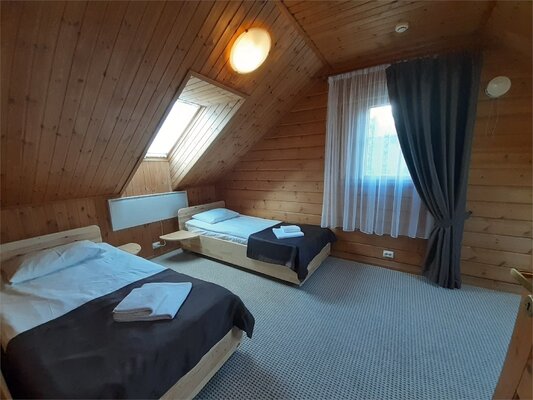 К услугам гостей комфортабельные двухэтажные коттеджи, многие из которых оснащены саунами и каминами.