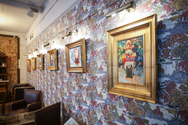 Антикварная мебель, ковры и гобелены ручной работы VIII-XIX веков создают особую атмосферу дворянской усадьбы. Потрясающая панорама слияния рек Колокши и Волги оживляет пейзажи Островского и Тургенева с их колоритными картинами провинциальной жизни именитых благородных семейств.
