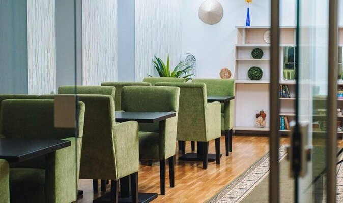 Ресторанный комплекс предоставляет несколько зон отдыха. Вы можете не только выбрать место для обеда или ужина, но и для проведения романтических свиданий, выпускных вечеров, торжественных мероприятий, мероприятий на открытом воздухе, конференций и деловых встреч. Кухня предлагает большой ассортимент европейских и русских блюд, которые удовлетворят вкусы самых изысканных гурманов. На территории комплекса работает услуга Room Service.