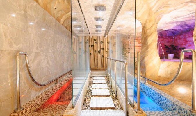 - банный комплекс, гидромассажные джакузи, контрастные души и соляную пещеру;