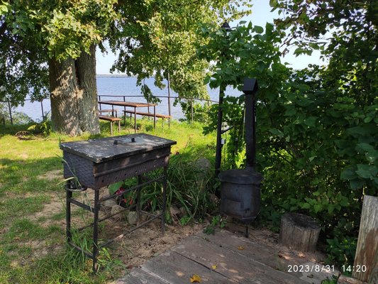 На территории имеется отдельная баня на дровах, оплата за использование производится отдельно. Также здесь есть мангальная зона со всем необходимым оборудованием. Вы сможете насладиться прогулками по лесу, сбором грибов, рыбалкой и пляжем. Удобный спуск к воде.