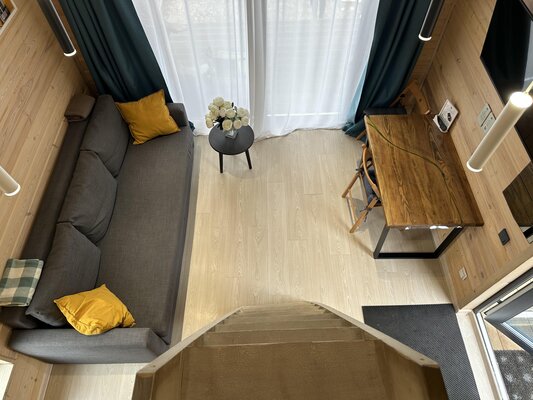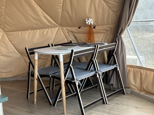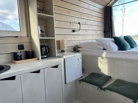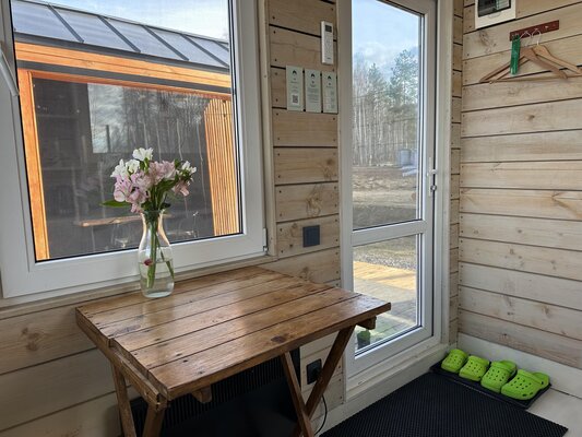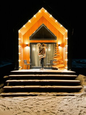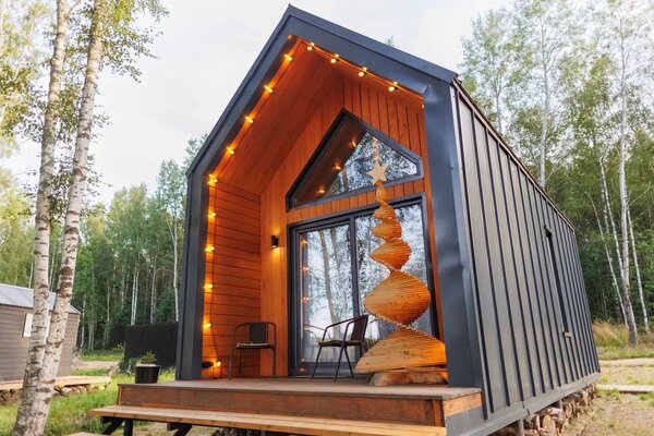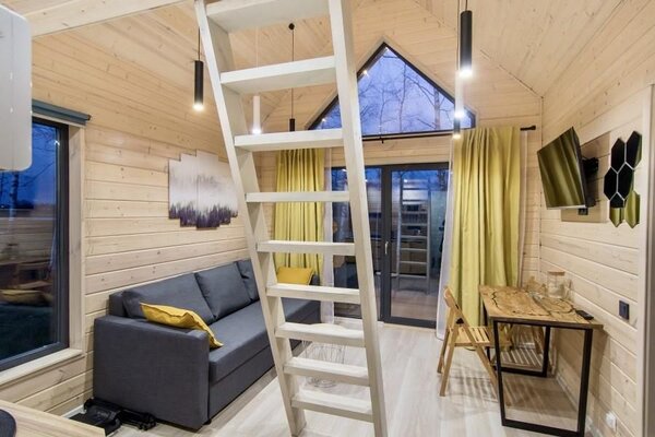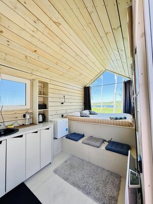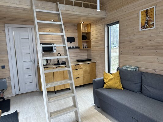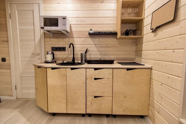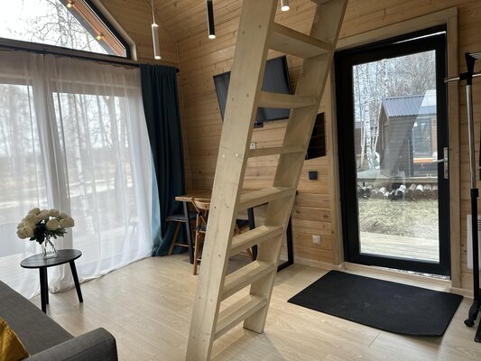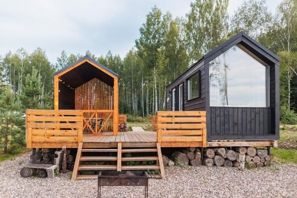 Уютные домики, выполненные из натурального дерева, органично вписываются в окружающий пейзаж и создают атмосферу единения с природой. В каждом домике есть все необходимое для комфортного проживания: удобные кровати, чистое постельное белье, оборудованная кухня и санузел с душем.