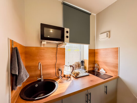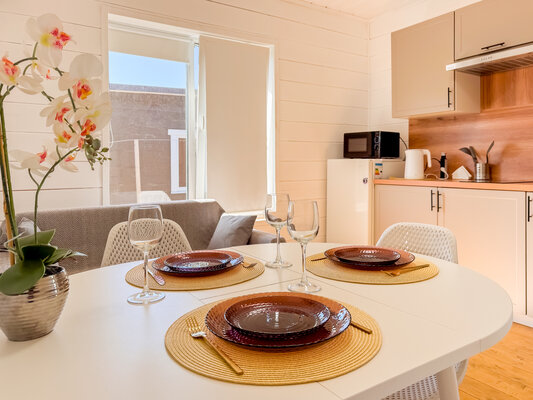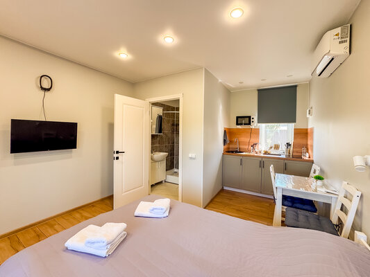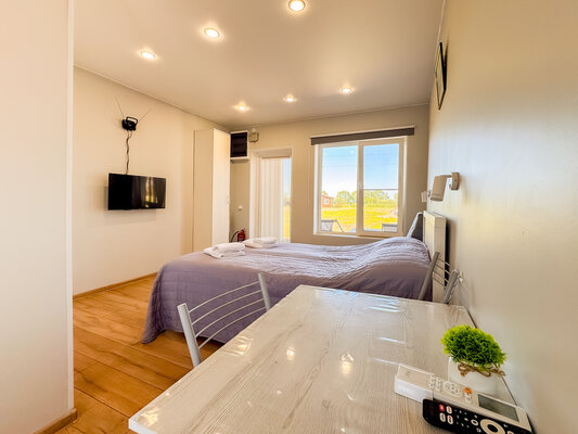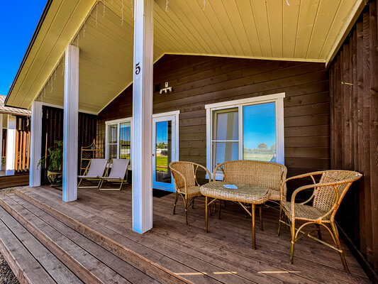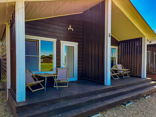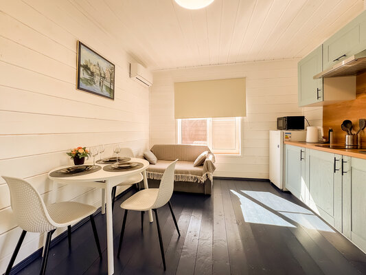 К услугам гостей современные коттеджи с удобствами: Wi-Fi, кухней, телевизором и собственной ванной комнатой. Каждый коттедж имеет террасу с шезлонгами для отдыха на свежем воздухе. На территории есть детская площадка, зоны для барбекю и охраняемая парковка.