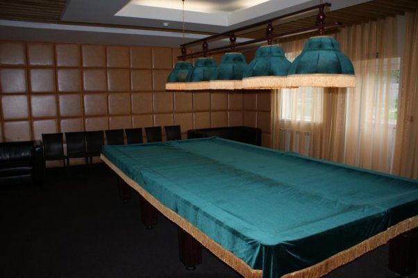 К услугам гостей просторный бильярдный зал (русский бильярд), смежно-расположенный с каминным залом на 25 посадочных мест.