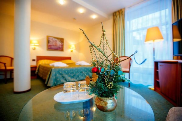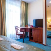 Для питания постояльцев в номере оборудован мини-холодильник. На территории отеля расположены ресторан и бар. Для проведения различных мероприятий оборудован конференц-зал.