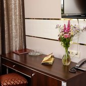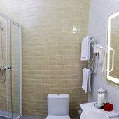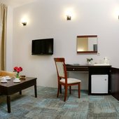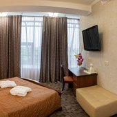 Просторные номера оснащены кроватью, телевизором, кондиционером, а также собственным санузлом.