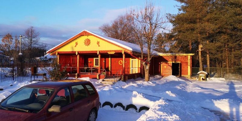 Гостевой дом «Дом Охотника» - это трехэтажный кирпичный коттедж на берегу озера Неро рядом с сосновым бором. В доме есть общая кухня и 2-х местные номера. В трехэтажном здании располагается 10 номеров общей вместимостью до 40 человек.