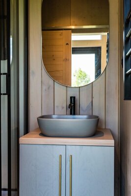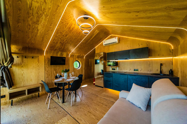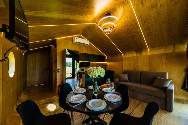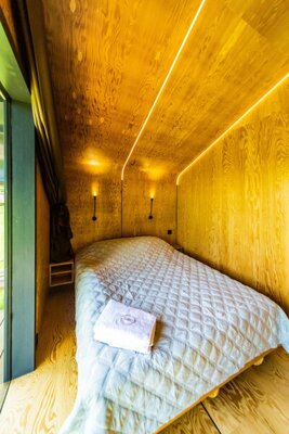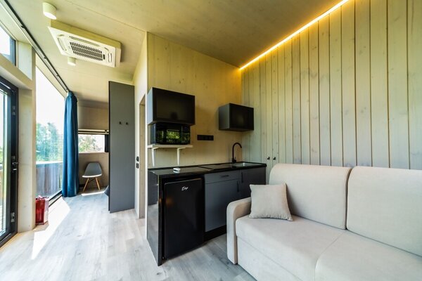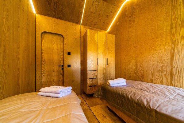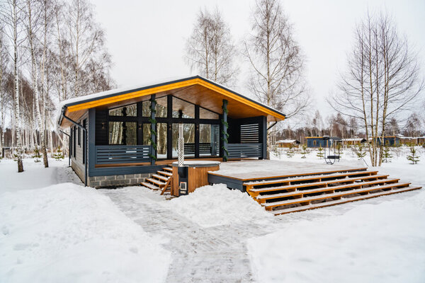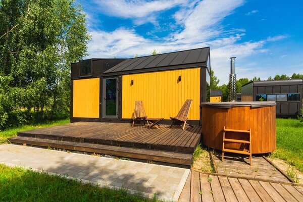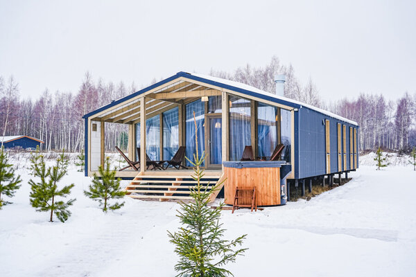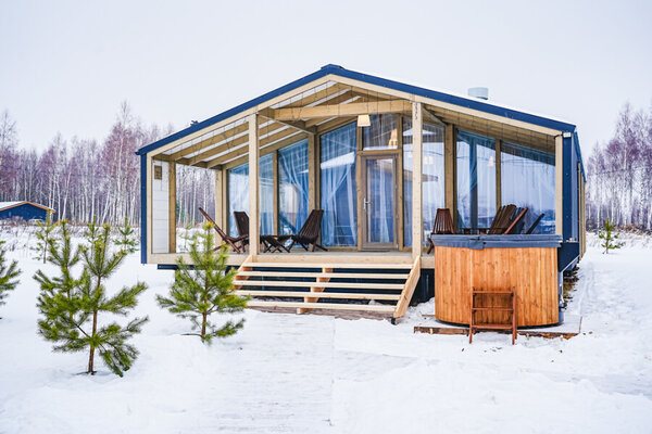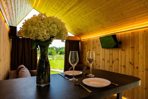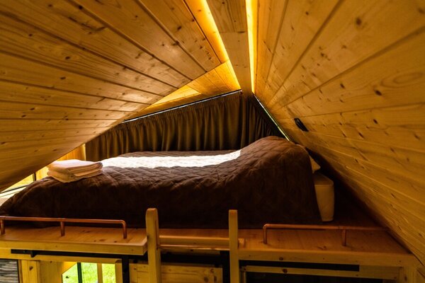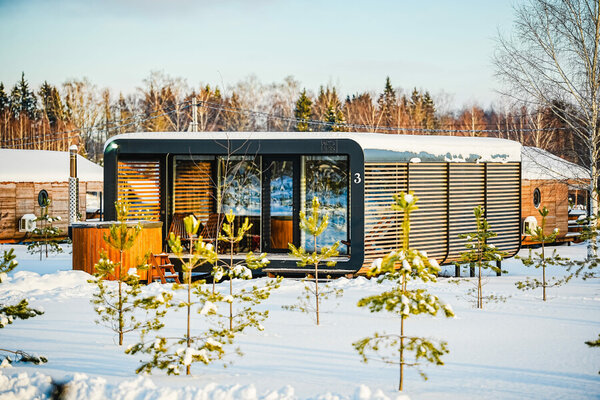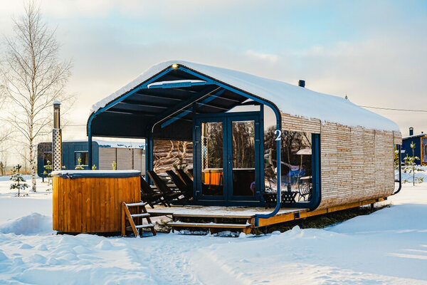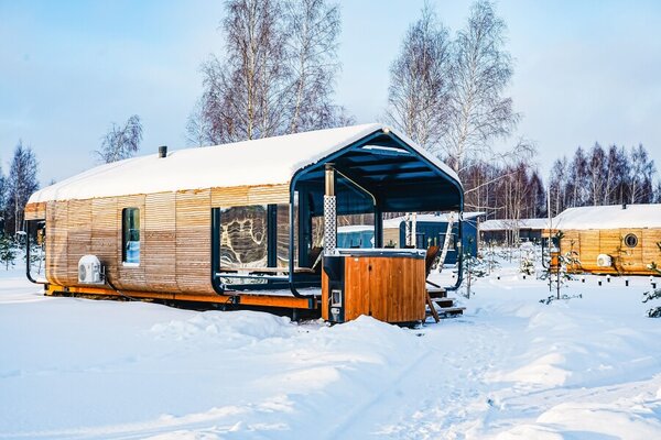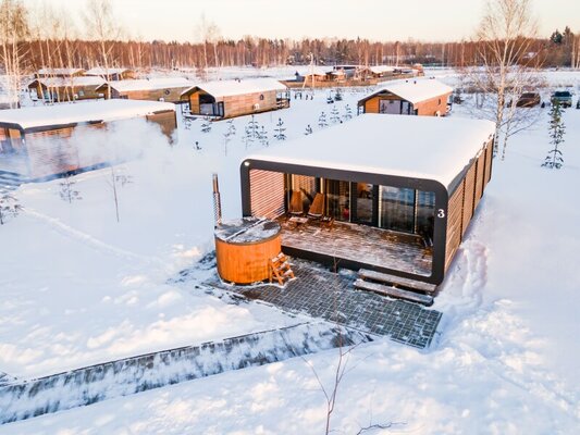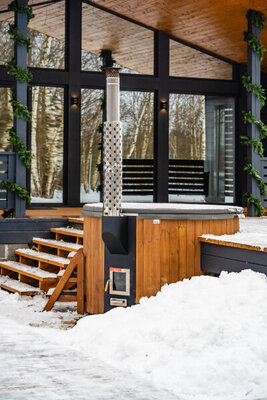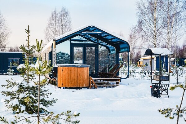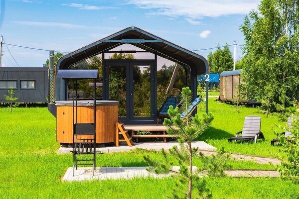 Возле каждого домика находится индивидуальная купель с мягкой подсветкой и гидромассажем, которая позволяет по-настоящему расслабиться и насладиться отдыхом под открытым небом. Для вашего удобства предоставляются халаты, банные полотенца и одноразовые тапочки, что делает процедуры ещё более комфортными.