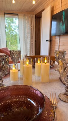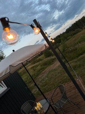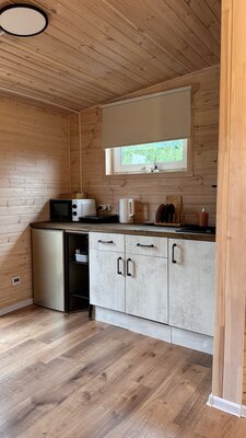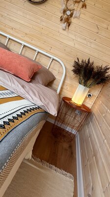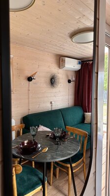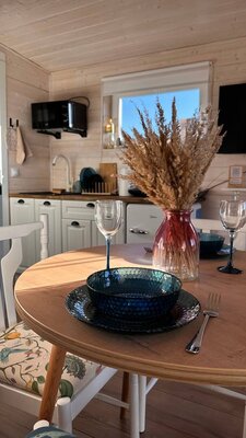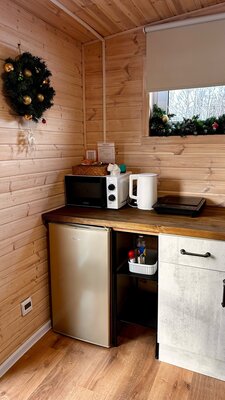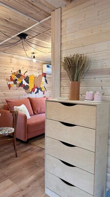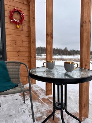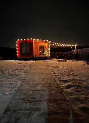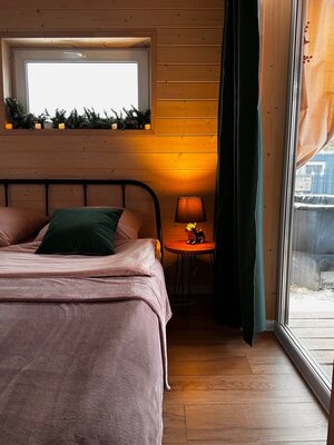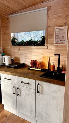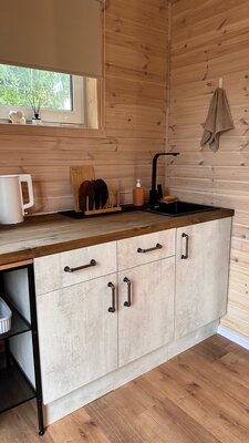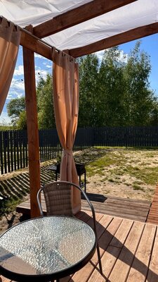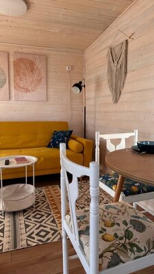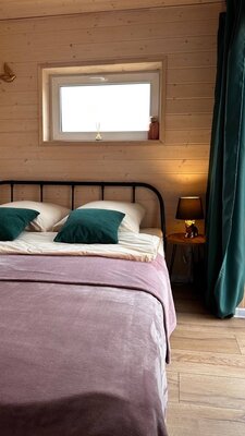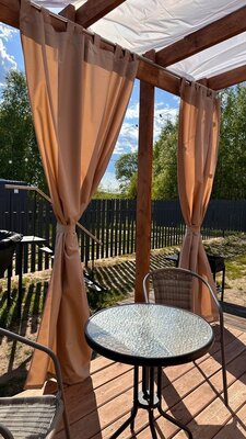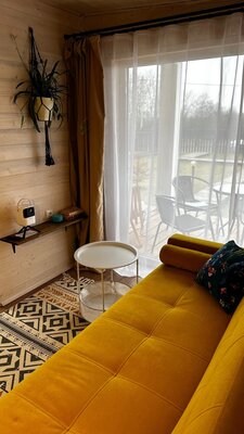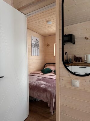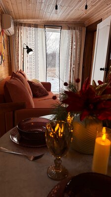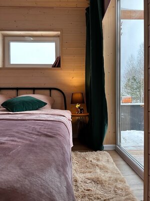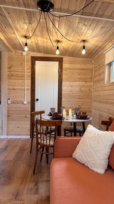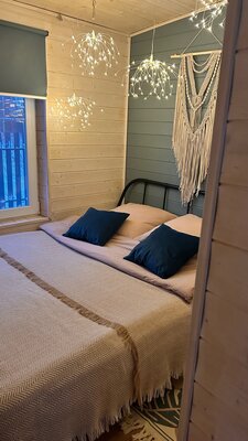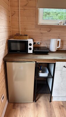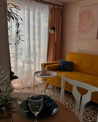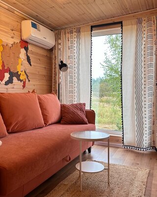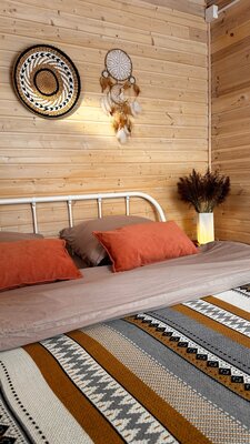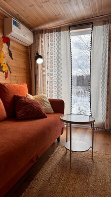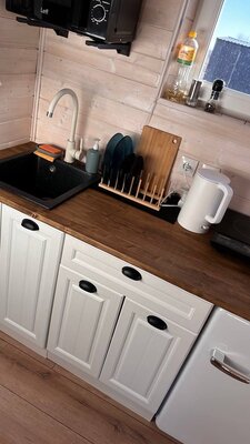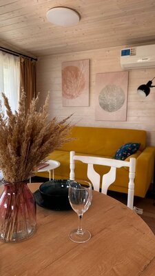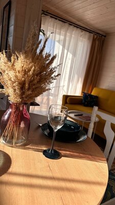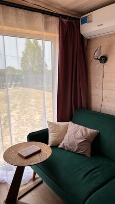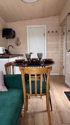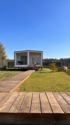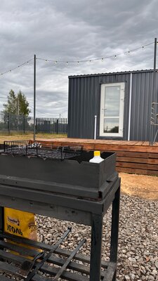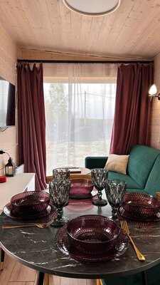 Каждый домик оборудован собственной зоной барбекю, где уже ждут мангал, решетка, розжиг и уголь. Внутри вас встретит уютная спальная зона с комфортной двуспальной кроватью и раскладным диваном. Для вашего удобства предусмотрена полностью укомплектованная кухня с красивой посудой, индукционной плитой, микроволновой печью, холодильником и электрическим чайником. Мы позаботились и о мелочах: в наличии базовые продукты, такие как чай, кофе, сахар и специи.