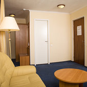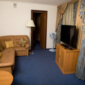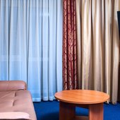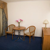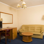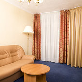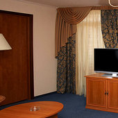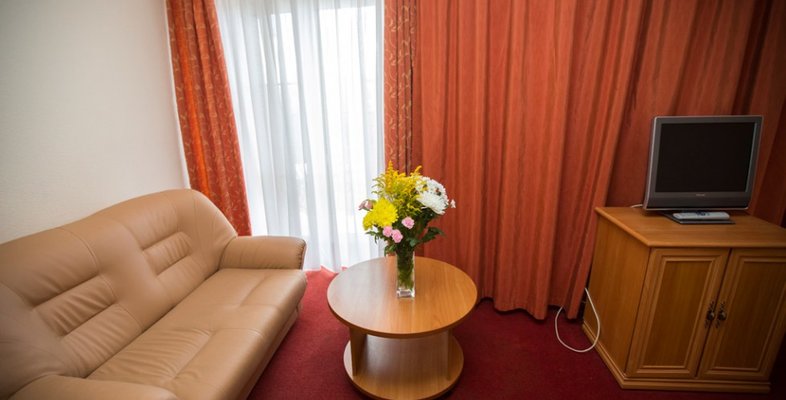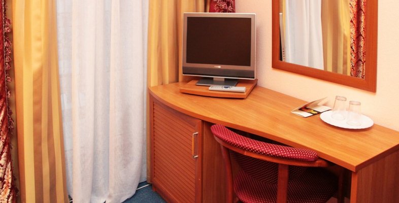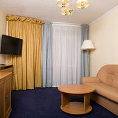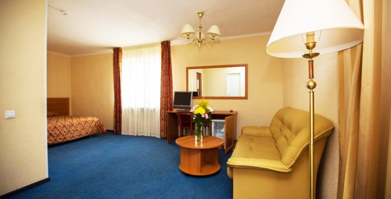Четырехэтажное здание отеля разместилось вдоль одной из главных магистралей города — улице Ростовской. Жилой фонд включает в себя категории «Стандарт» и «Люкс». В каждом из них имеется собственный санузел с ванной или душем, телевизор и холодильник.